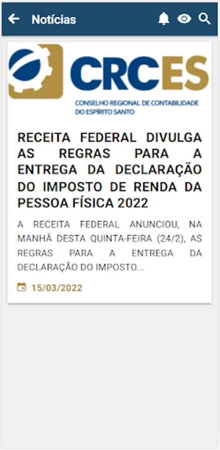 Application for consultation and cadastral update, payments, enrollment in courses and news from the Regional Accounting Council of the State of Espírito Santo.