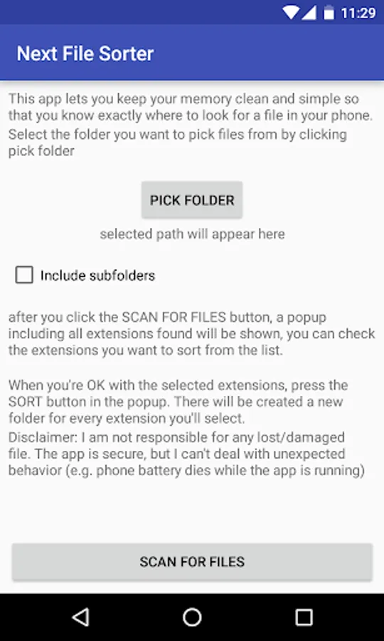 This app is not a simple "searching tool" as many other File Explorers, this app actually does the job of seeking and sorting your files.