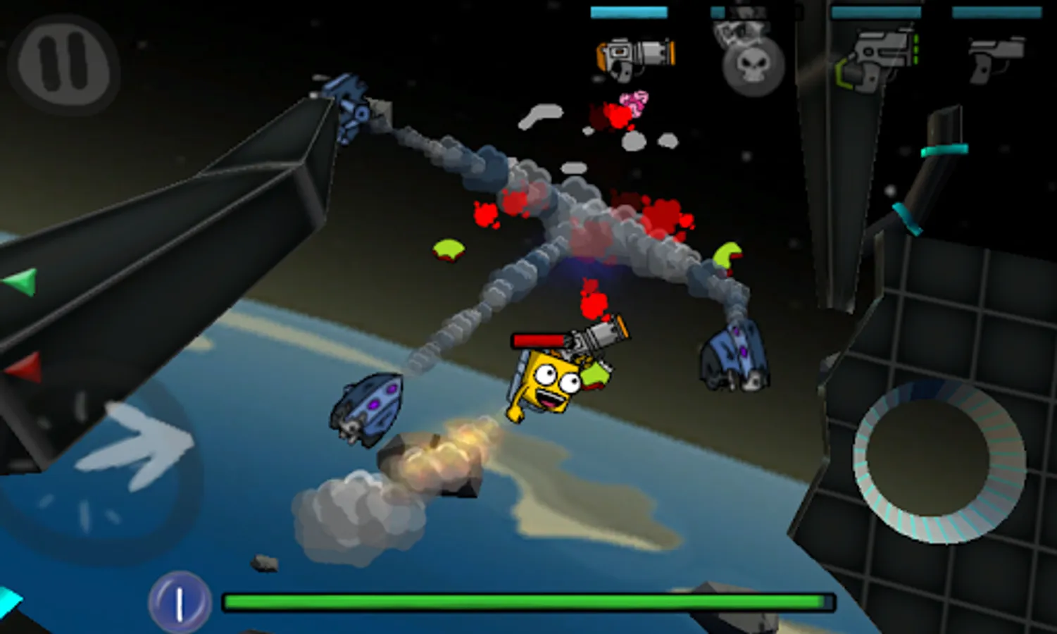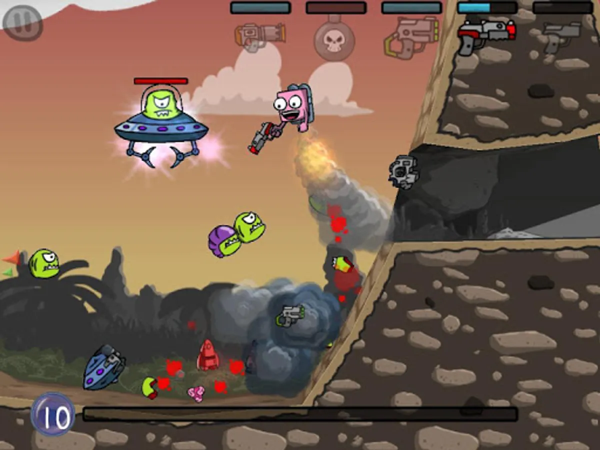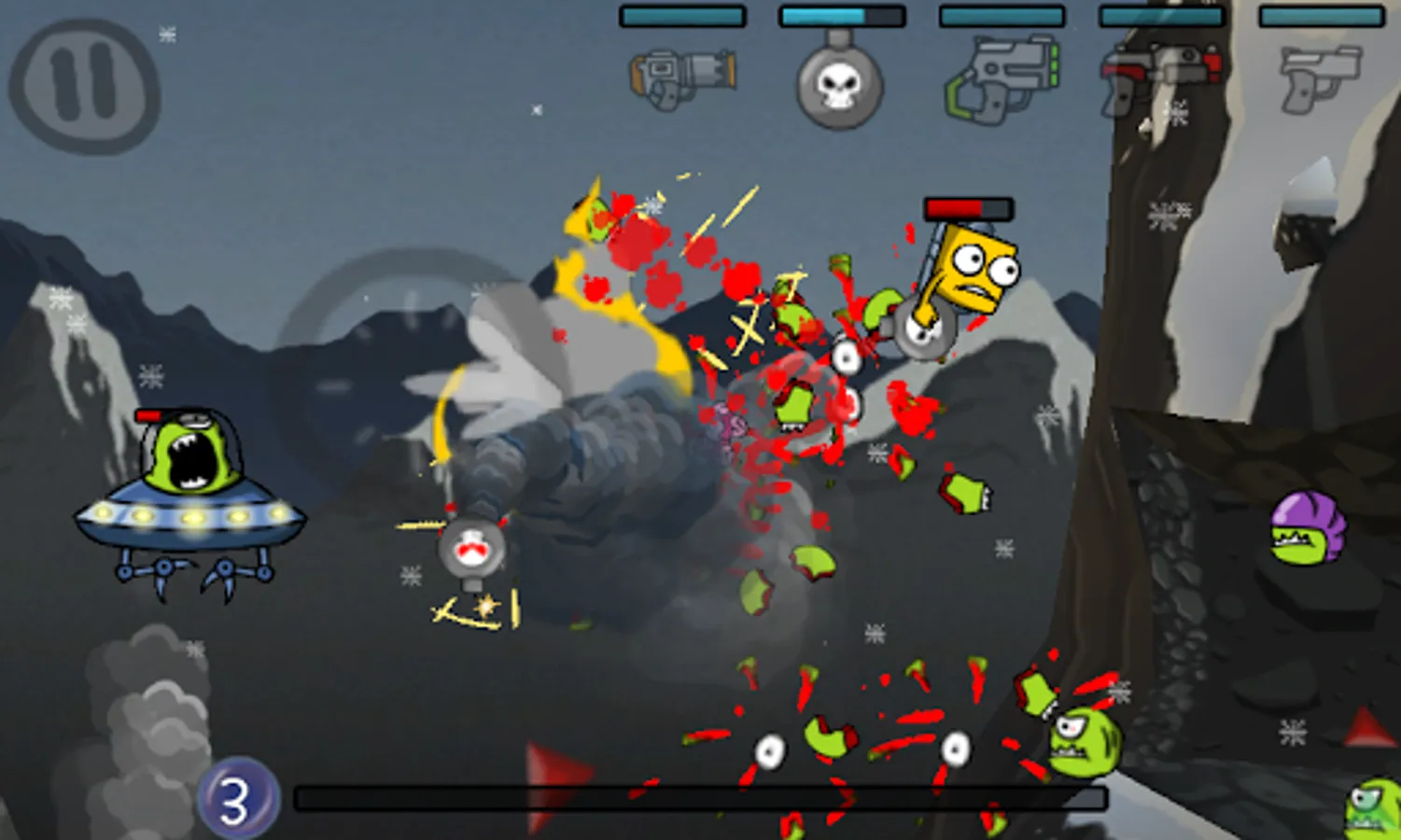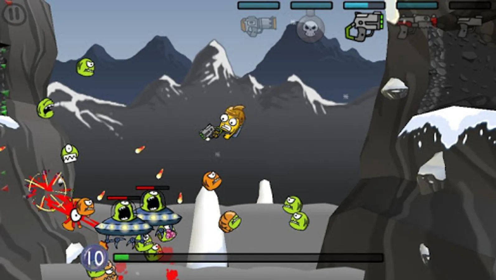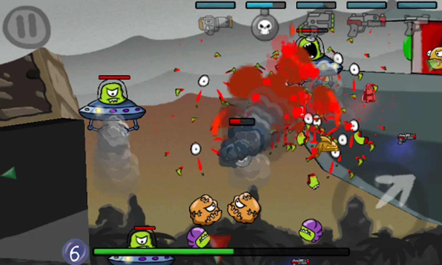 Blast, dodge and disintegrate your alien enemies in a desperate bid to save humanity. Wield shotguns, bombs and missiles in an insane survival frenzy. Features beautiful sound and 2.5D graphics, hordes of vicious aliens and absolutely loads of addictive fun.