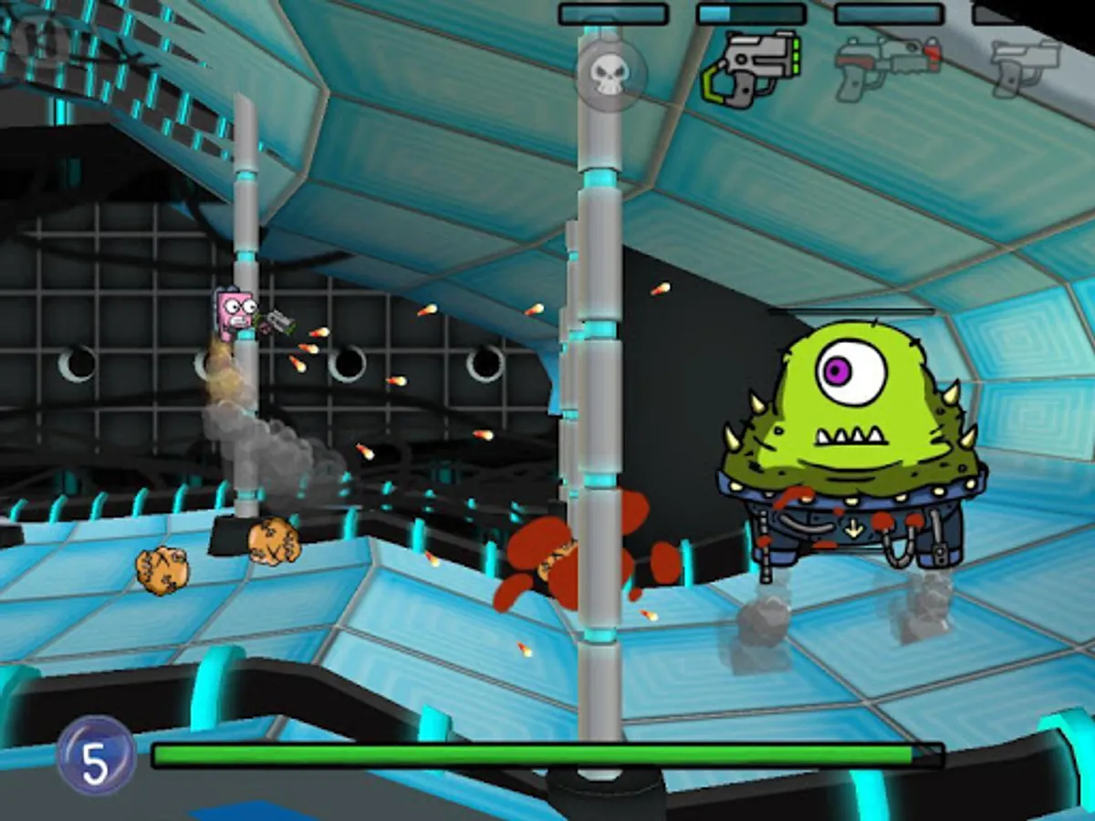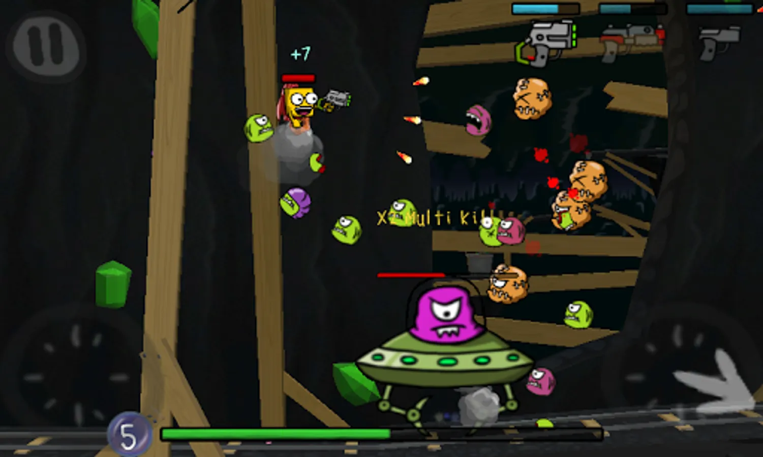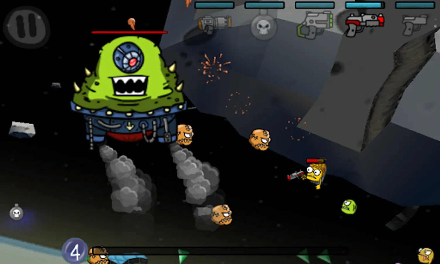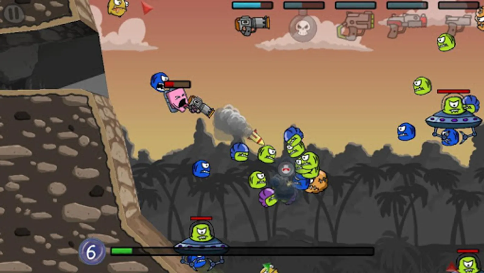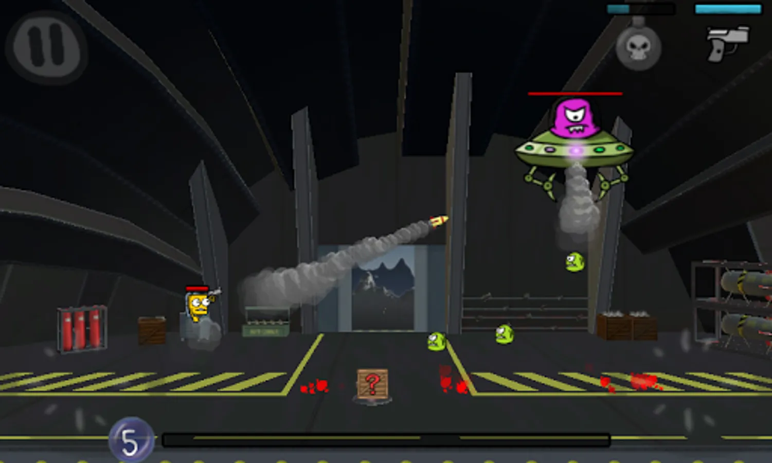 Blast, dodge and disintegrate your alien enemies in a desperate bid to save humanity. Wield shotguns, bombs and missiles in an insane survival frenzy. Features beautiful sound and 2.5D graphics, hordes of vicious aliens and absolutely loads of addictive fun.