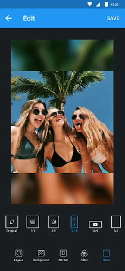 Edit photo with filter, sticker, text, etc. Post no crop photo on Instagram. Square grid for Instagram.