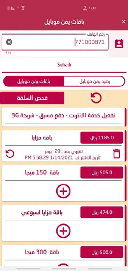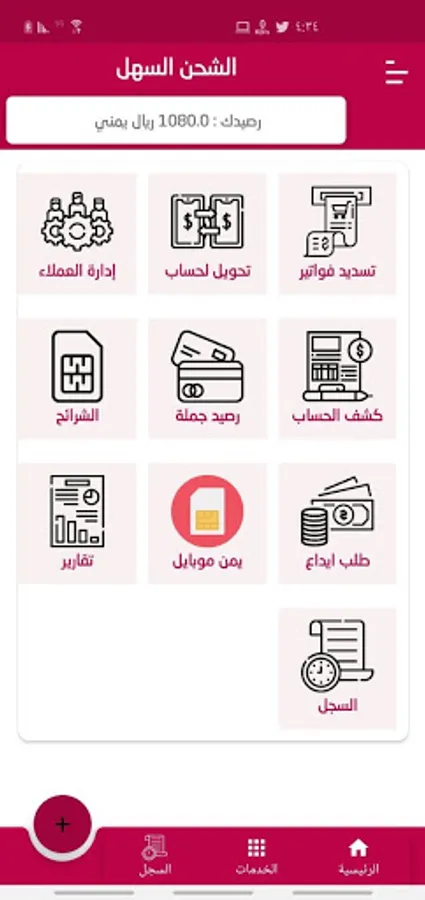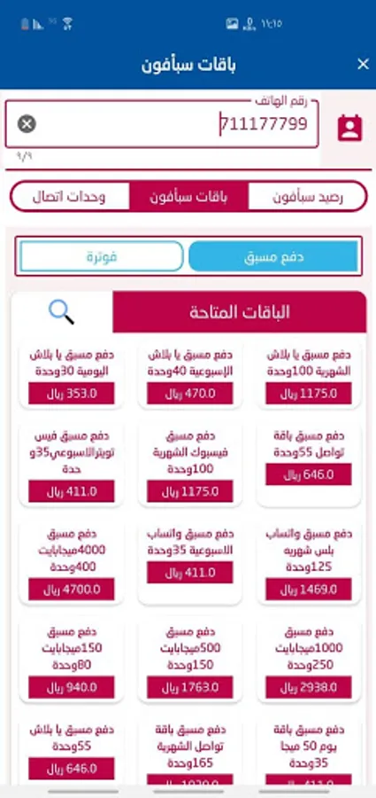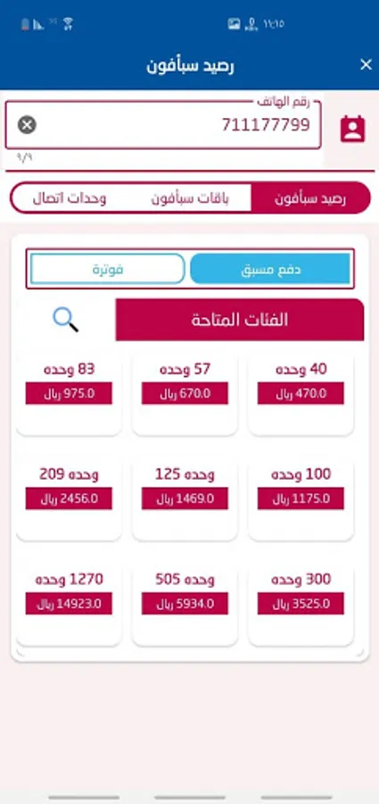 Recharge for all local networks in the Republic of Yemen services are available