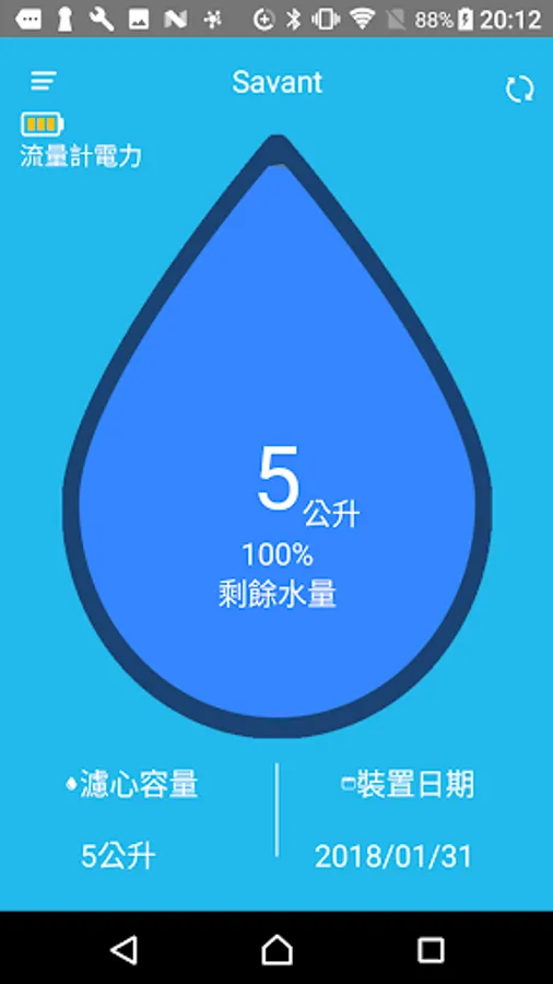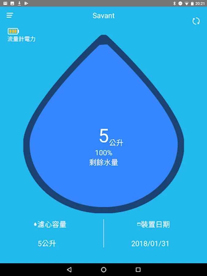 . Reading water filter capacity from the Bluetooth flow meter.