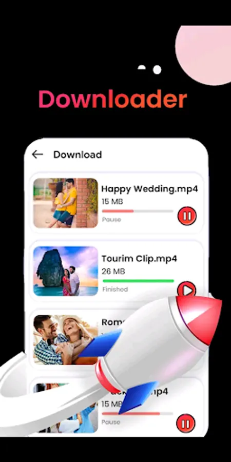 ⚡ HD video downloader app auto detects videos, you only need to click the download button. Pause, resume, or remove downloads as you like.
