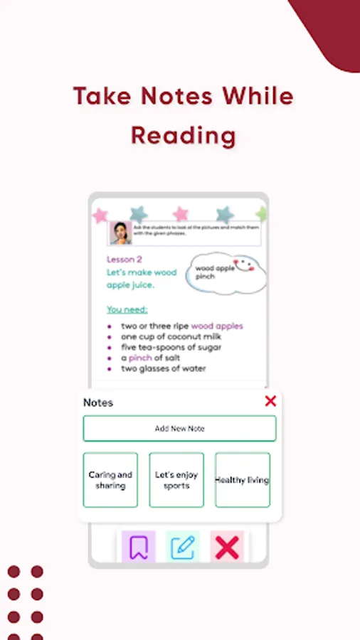 It also acts as a note-taking app which has a default functionality of adding notes while reading the books and added with that making a bookmark within the book in order to return to the right spot where you left off.