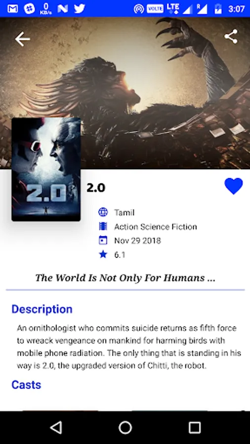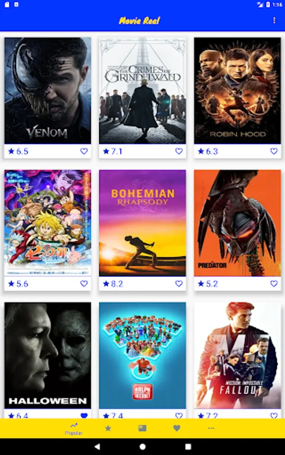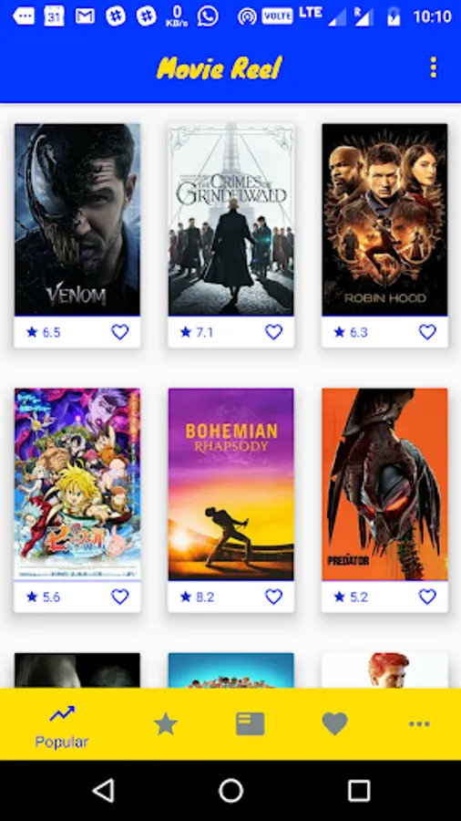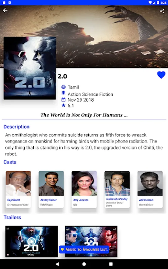 This app helps you to browse for Top, Popular, Upcoming movies, view its details like description, casts, trailers, genres reviews which are retrieved from https://www.themoviedb.org/ .Favourite movies are saved into local DB using Android Architecture Components.