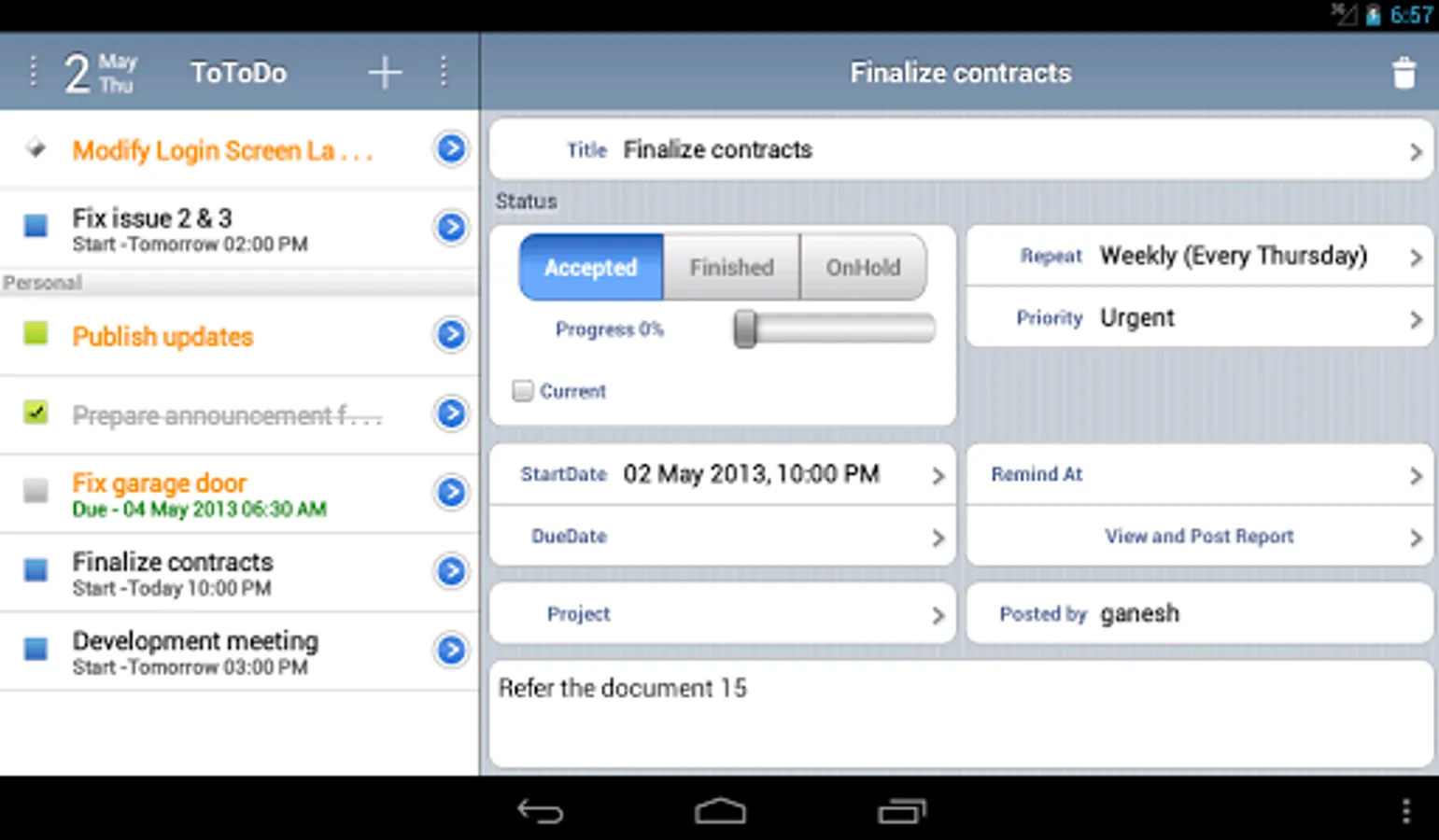 Managers can assign tasks to other resources, schedule reports to be posted, watch the progress etc. Totodo lists official to-do items along with your personal to-do. Team and Task management can be done through Totodo desktop version.