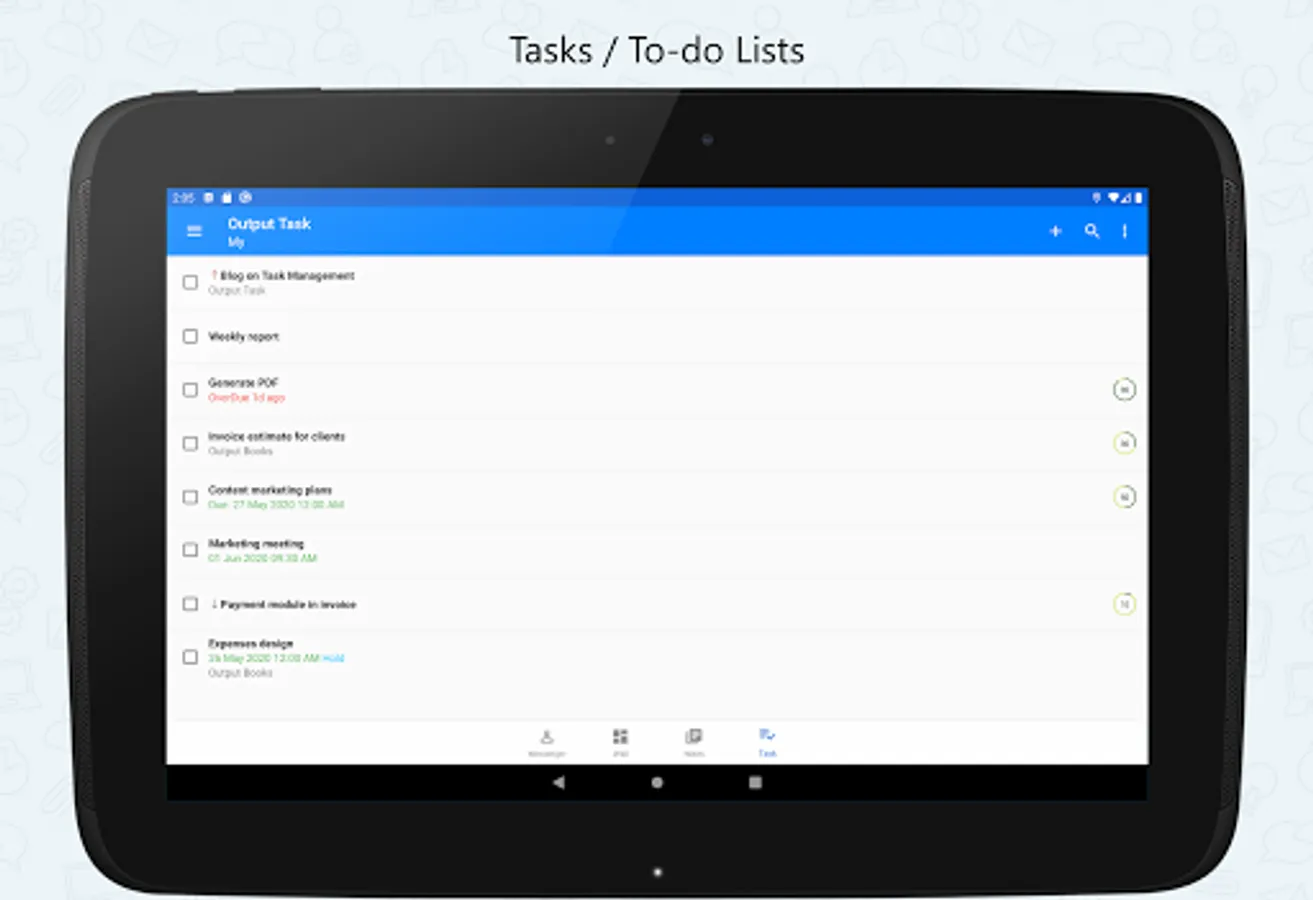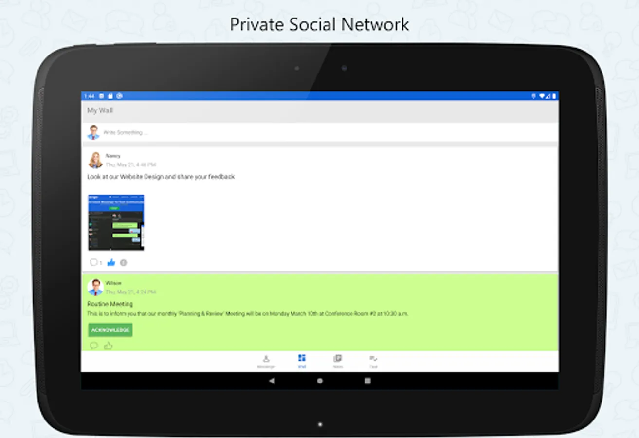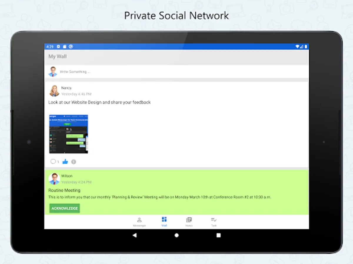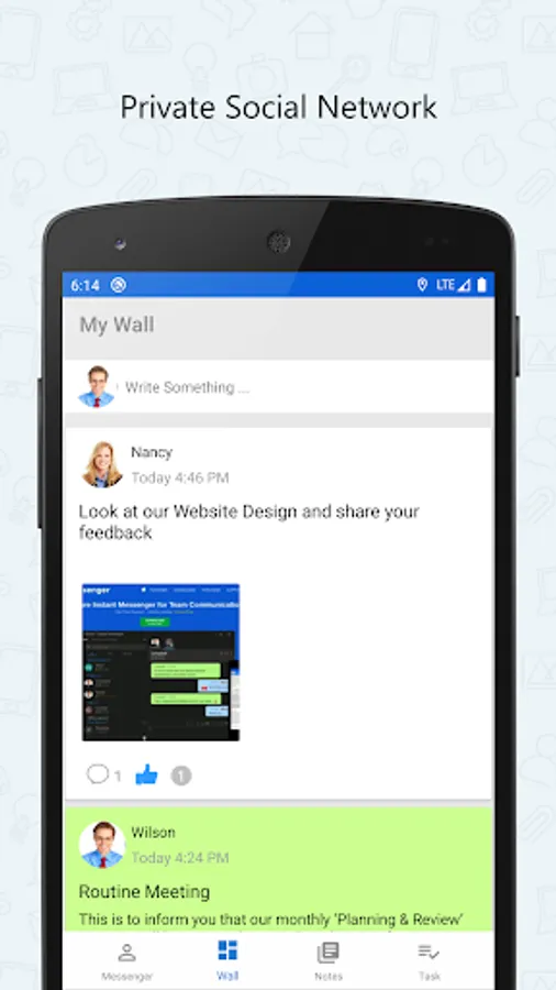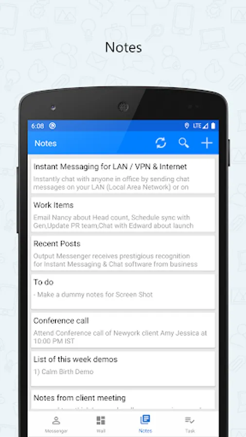 This Android Mobile app extends the power of Output LAN Messenger to your Smartphone & Tablet bringing Instant Messaging, Group Chat, File Transfer and several other features. Software features are tailor made to improve collaboration between teams to work together efficiently within office campus's and remote sites. The On-premises server and high level encryption technology ensures privacy and confidentiality for internal communication in the small, medium and corporate environments, hospitals with HIPAA regulations, and in the government and banking sectors.