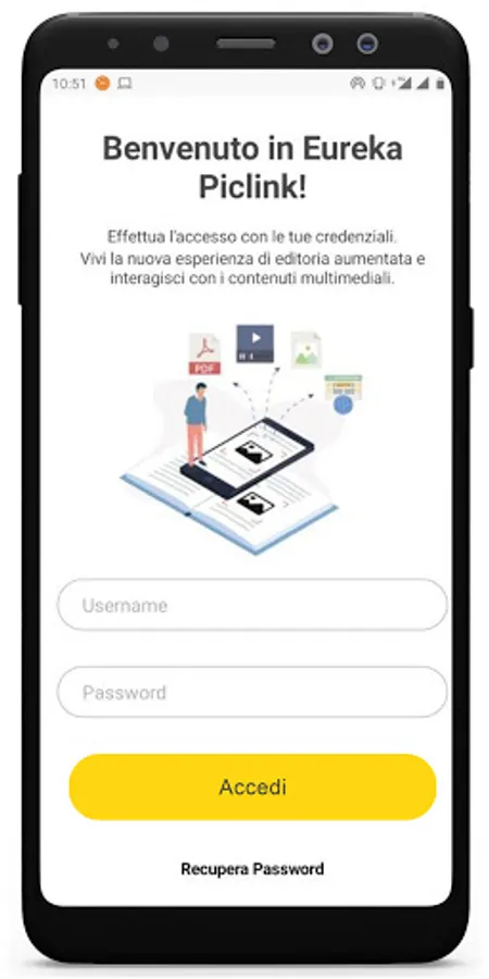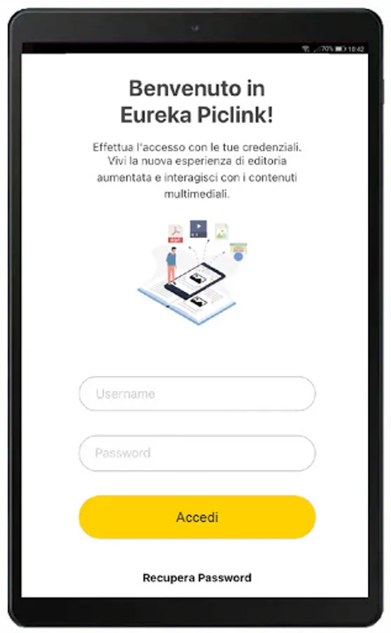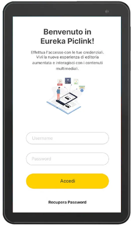 By framing with the camera of a smartphone or tablet, the "marker" image found on printed material - such as a poster, a package, the page of a newspaper, a magazine or a book - the Eureka Piclink app allows you to access additional digital content, such as documents, videos, animations, web services.