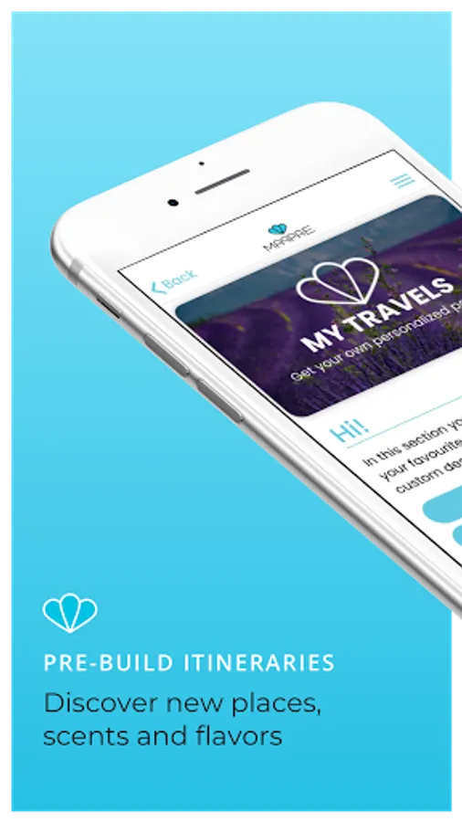 - Access the section “My travels”. Here you can download 12 planned itineraries designed to enjoy the universe of aromatic herbs and fragrances or create your personal wishlist. For each itinerary you have all the information you need during your travel