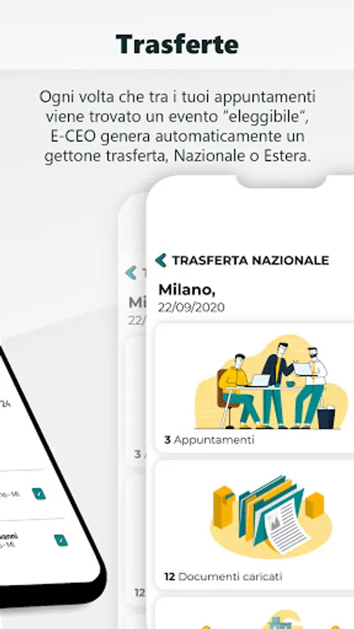 - Synchronize your work schedule, without having to worry about manually entering your business appointments. For each of the events on the agenda, the E-CEO acquires information relating to "Where, When, What and With Who". With this information we are able to calculate all the incentives to which you are entitled and which you can request directly in the App.