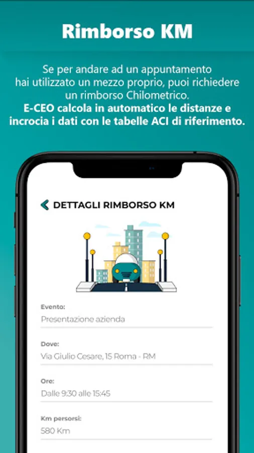 - Request and obtain a KM Refund if you used your own vehicle to go to an appointment. E-CEO automatically calculates the distances and crosses the data with the reference ACI tables.