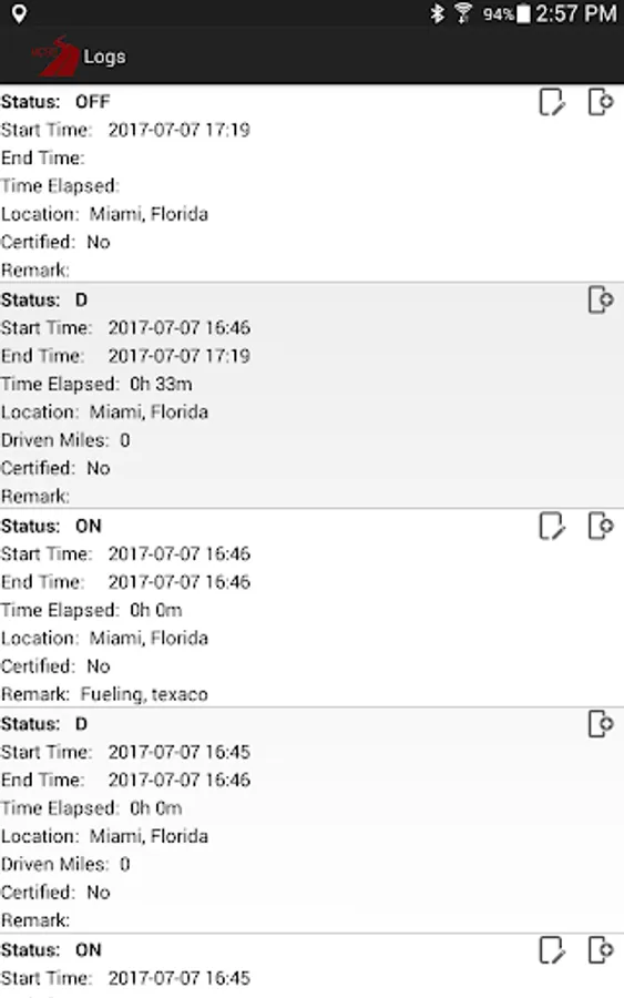 -When the truck is stationary for 5 minutes or more, it will default to on-duty not driving and the driver must enter the proper status