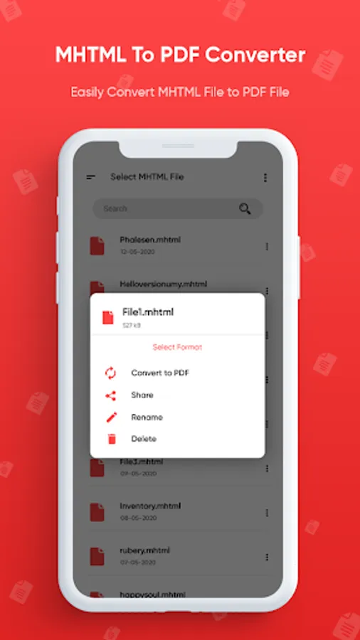 MHT/MHTML To PDF Converter app is a powerful tool to create MHT file or convert web into MHT file and also read and convert all MHT/MHTML files to PDF. MHT/MHTML Viewer will read all MHT or MHTML Files and can also be used as pdf viewer and show all pdf files that are saved on your device and preview within app easily.