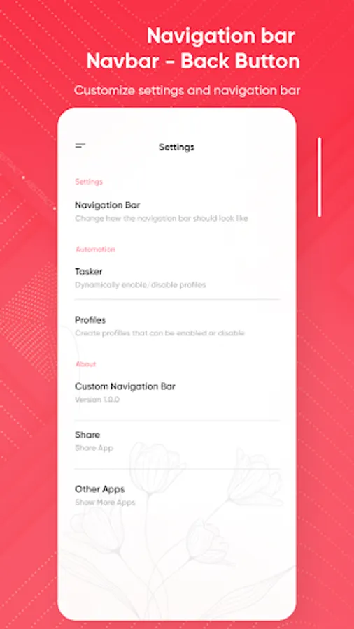 - tap On/Off button to easily on and off the custom navigation control bar