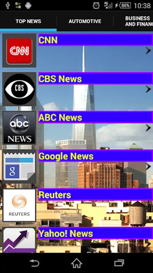 • World News (Politics, Business, Finance, HiTech, Sport, Health, Entertainment, etc): CNN, CBS News, ABC News, Google News, Reuters, Yahoo!News, The Wall Street Journal, etc