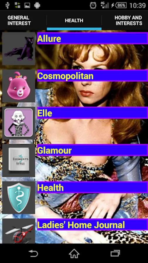• Health: Allure, Cosmopolitan, Elle, Glamour, Marie Claire, etc