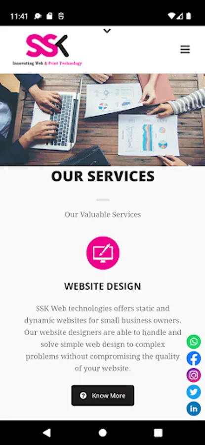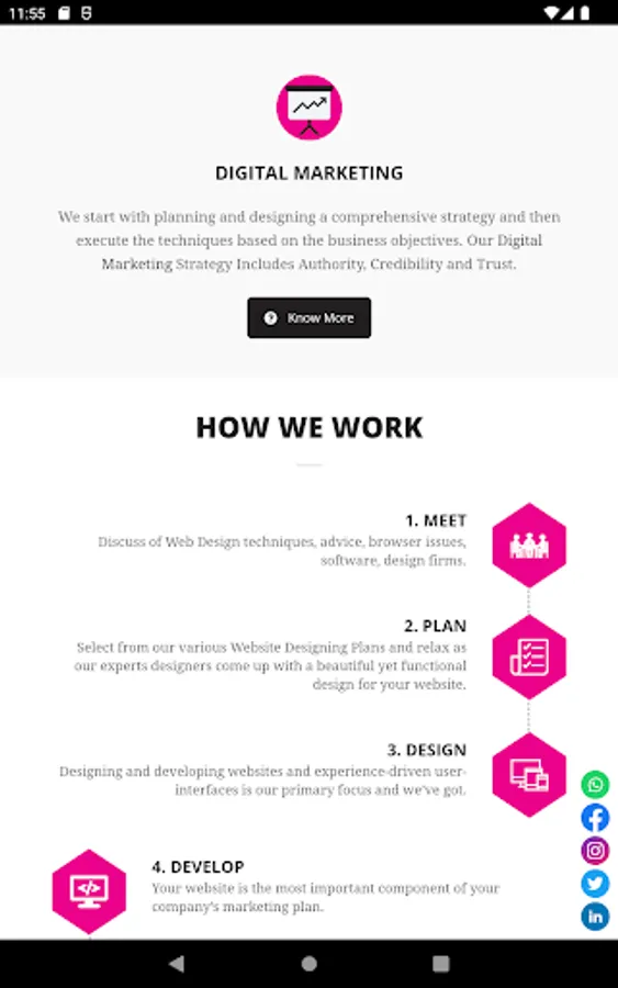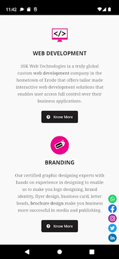 Our application is based on view our roles and clients. And contact with social medias like Whatsapp, Facebook, Instagram, Twitter, Linkedin.