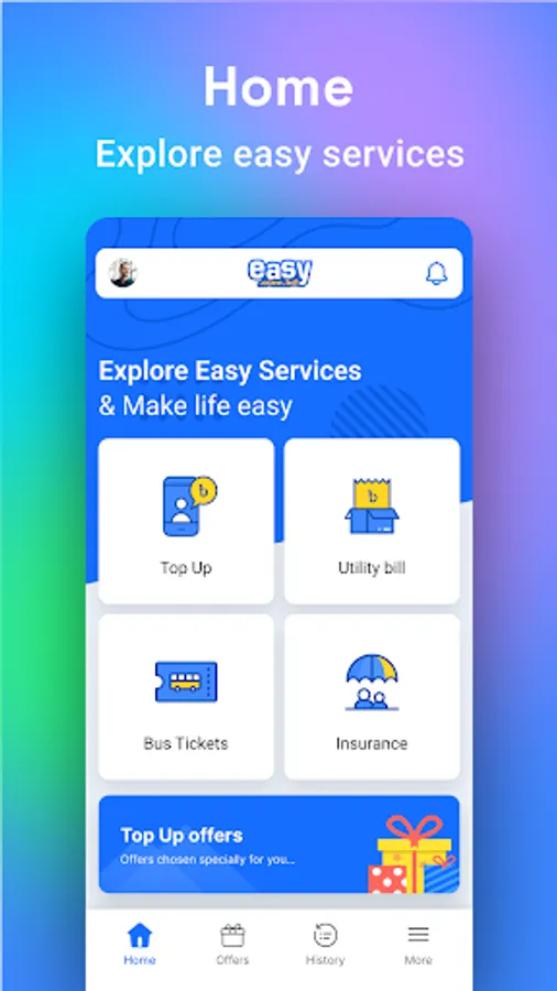 Experience the easiest mobile recharge and utility payment application in the app market from the easy.com.bd team.