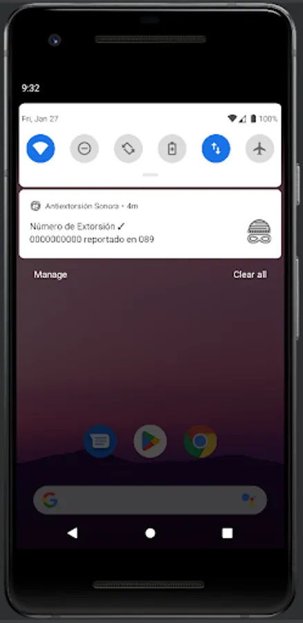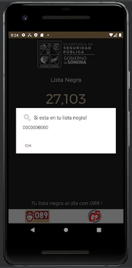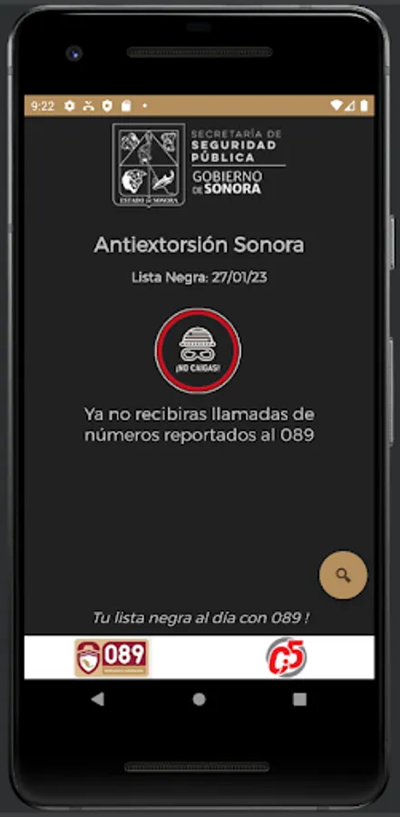 The main functionality of the App is to detect extortion calls from numbers reported by citizens to 089 Sonora.