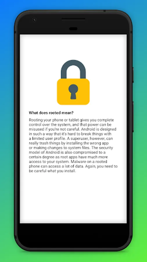 Super Simple Root Checker (SSRC) is a lightweight Android root device check. In very simple terms, it can assist a person in determining whether or not they may be the victim of stalking, spying or something more sinister. There are also legitimate reasons why people may root their device. Rooting your phone or tablet gives you complete control over the system, and that power can be misused if you’re not careful. Android is designed in such a way that it’s hard to break things with a limited user profile. A superuser, however, can really trash things by installing the wrong app or making changes to system files. The security model of Android is also compromised to a certain degree as root apps have much more access to your system. Malware on a rooted phone can access a lot of data. Again, you need to be careful what you install.
