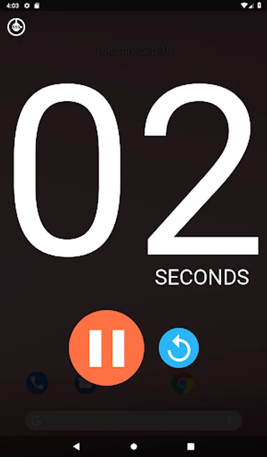 A simple stopwatch with minimal UI features: big buttons, big white text and a dimmed transparent background. It's not very slick, but it's pretty slick. slick!