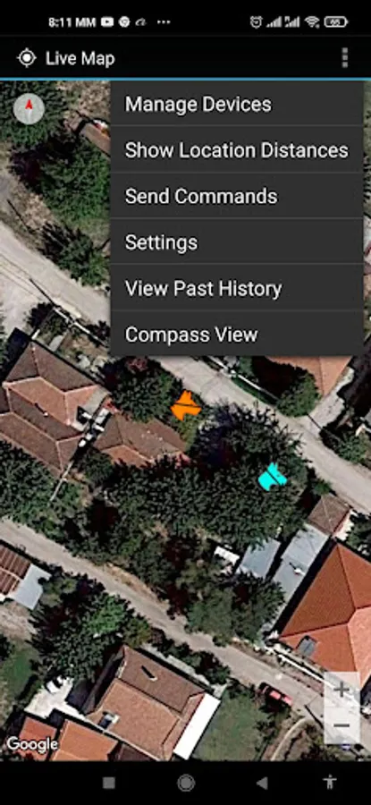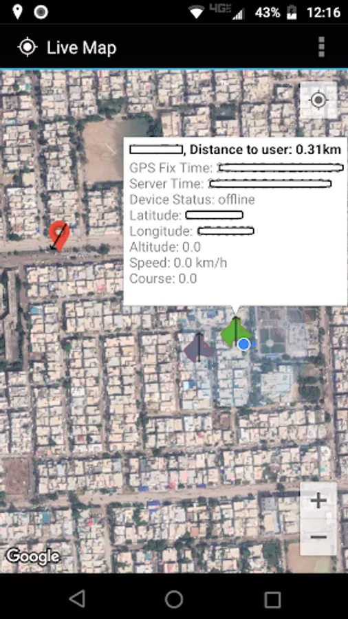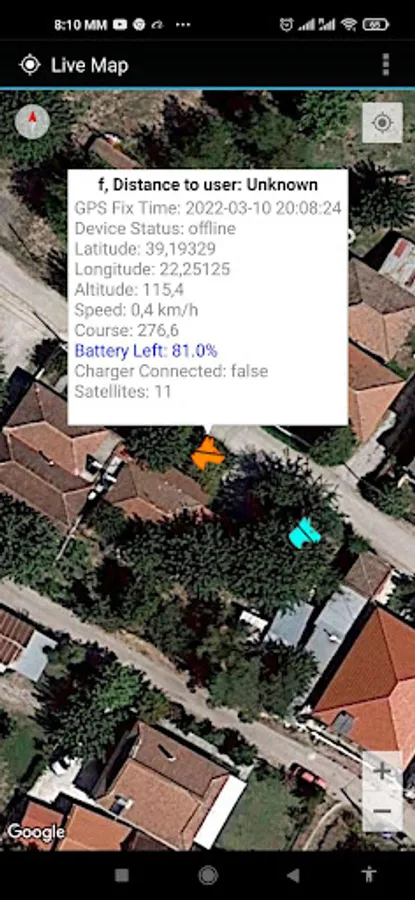 The application is used to configure and monitor connected APP-100 tracker devices from Hunter Electronics. It shows on google satellite maps tracker device position, route, distance from user, tracker battery level and speed. Several trackers can be added to same account on app.