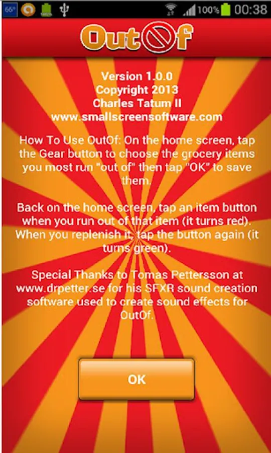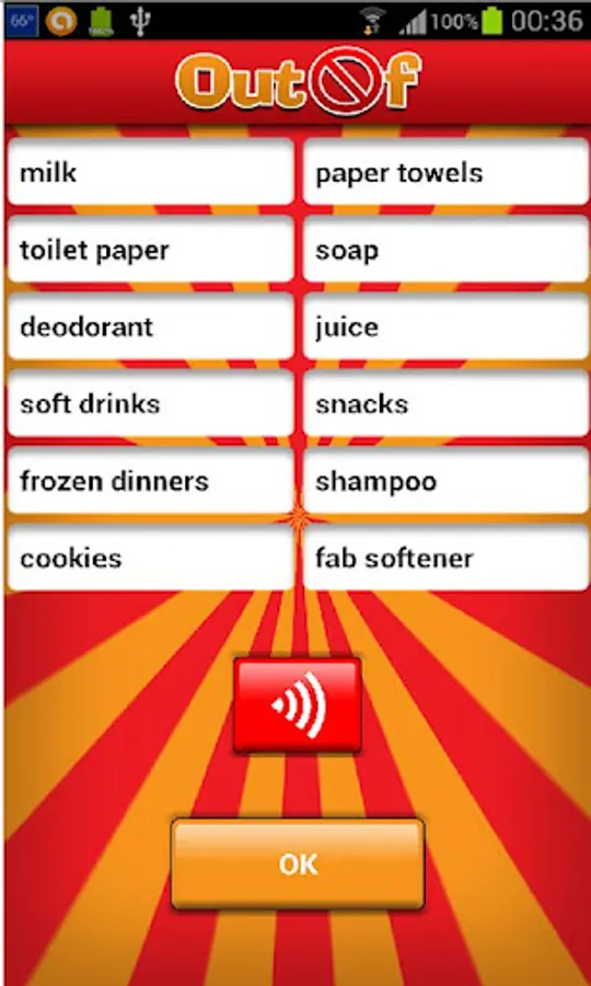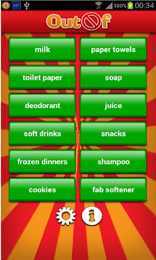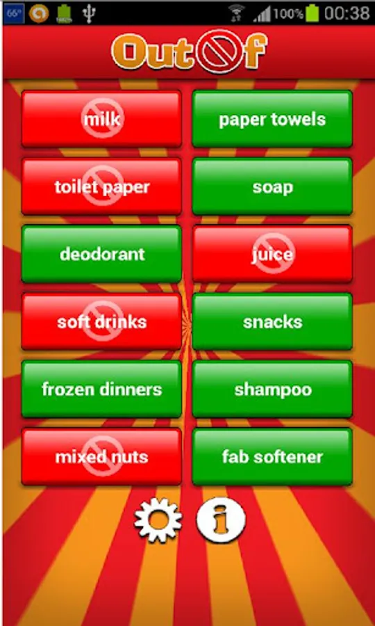New! From the maker of Checkbook Genius comes this simple grocery shopping tool that's better than any notepad app. Use OutOf to keep track of the 12 items you mostly run "out of"! Enter the names of anything you frequently use up - milk, paper towels, coffee, deodorant, soap, detergent - anything! When you run out of an item, simply tap the button so it changes from green to red. The next time you're out shopping at your favorite grocery store, tap the item buttons to change them from red back to green. Perfect for singles, students, or anyone who easily forgets just what they ran by the store to pick up!