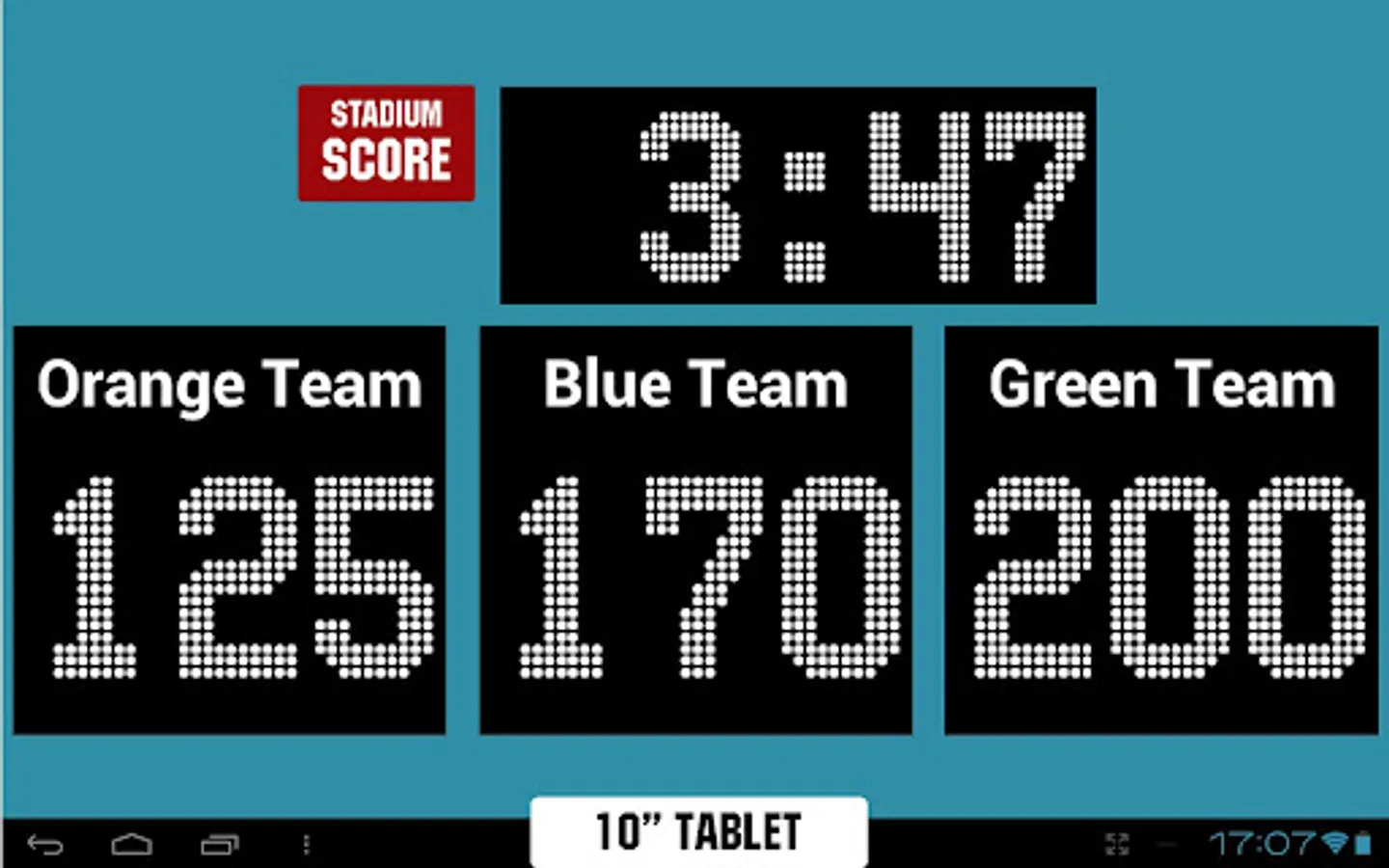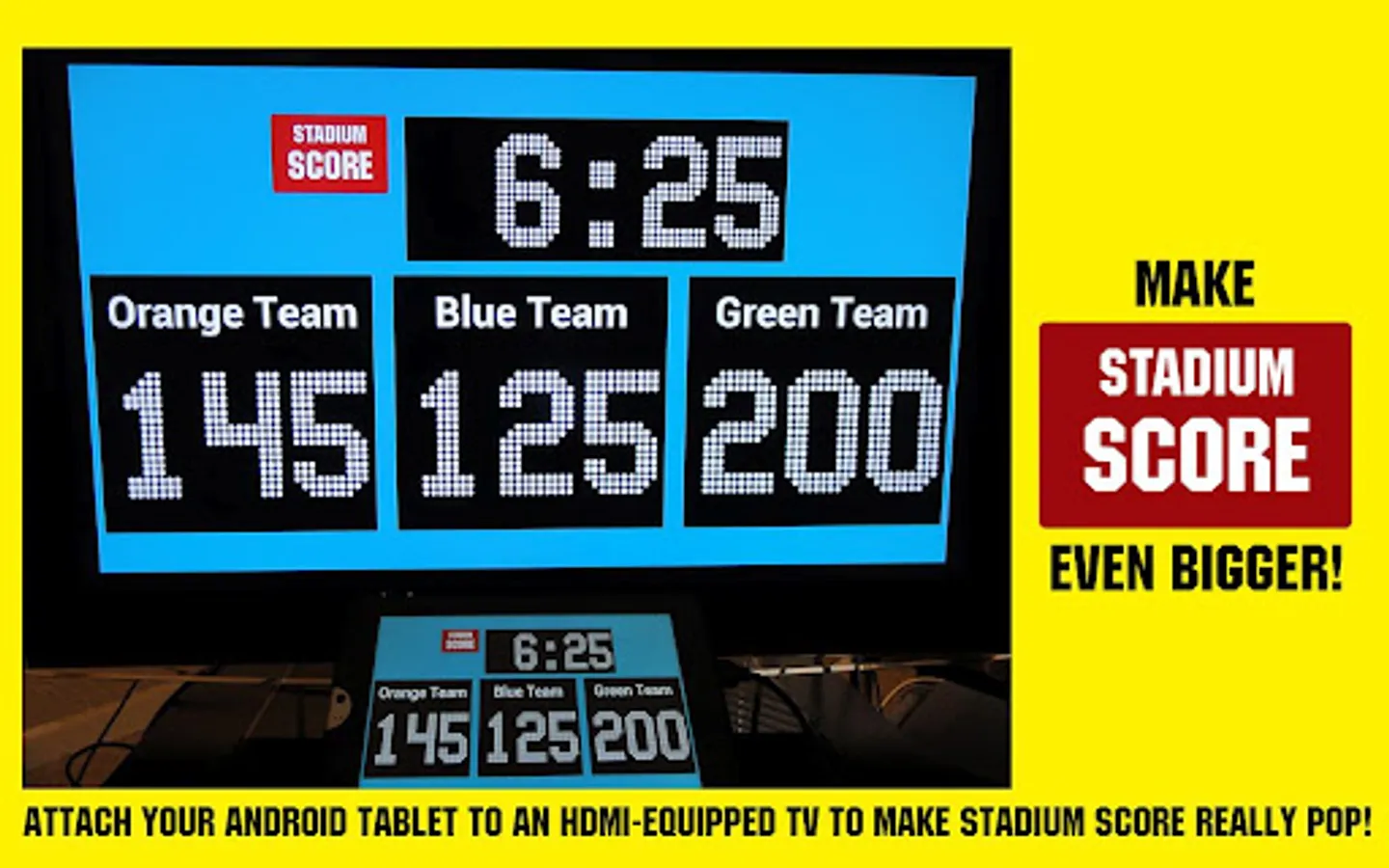 Stadium Score can be used for games, sports, or whatever you want. It's designed to be a score display system rather than a score pad. Users with 7" or 10" Android tablets can display scores with great, big numerals - just prop your tablet up near your game or indoor sport and you're good to go!