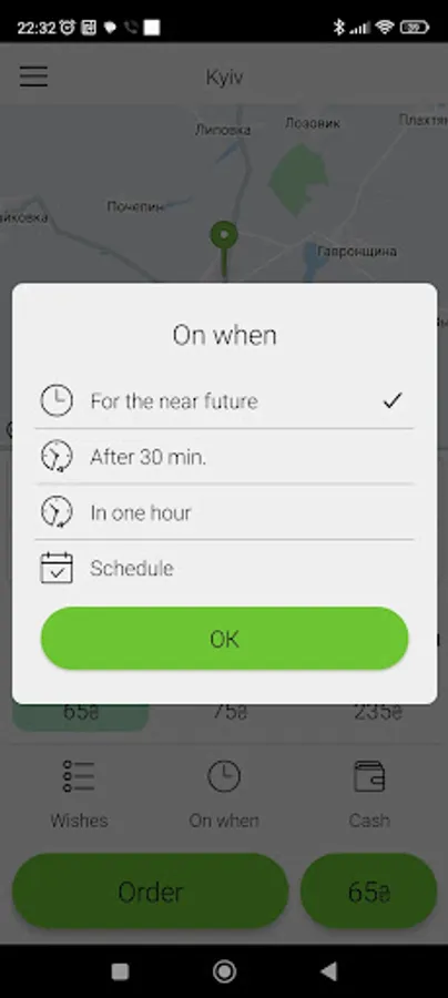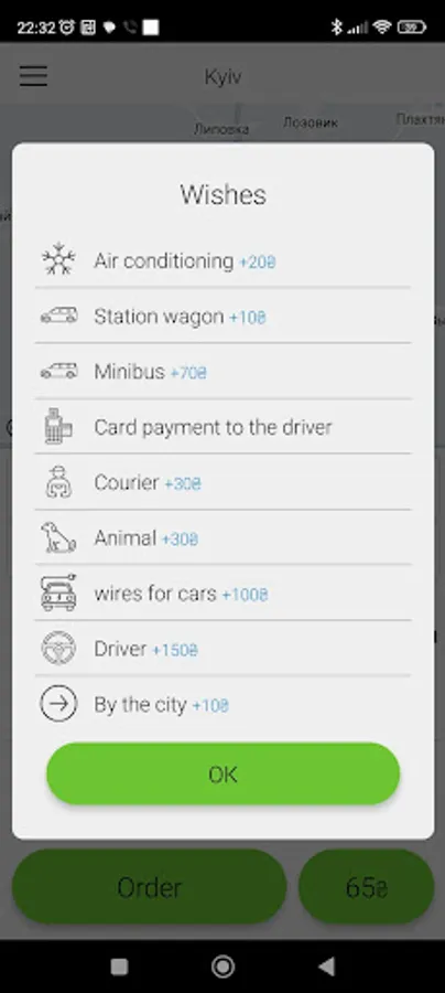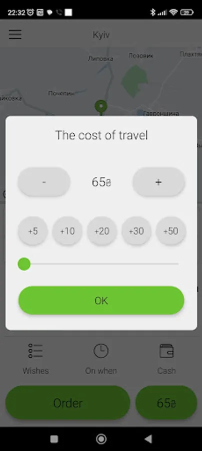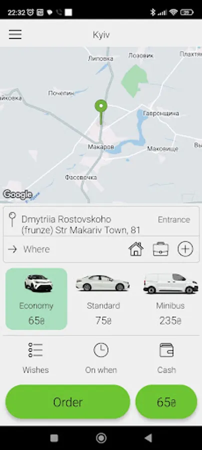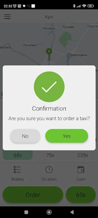 So, "I'm taking a taxi" app will help you book a taxi online in a matter of minutes, taking no account of where you are or what time it is. The app’s menu “Map” will show your location in real time, no matter what city of Ukraine you are in, and a box for manually selecting an area and city is handy when you are planning a trip and want to find out how much it may cost you.