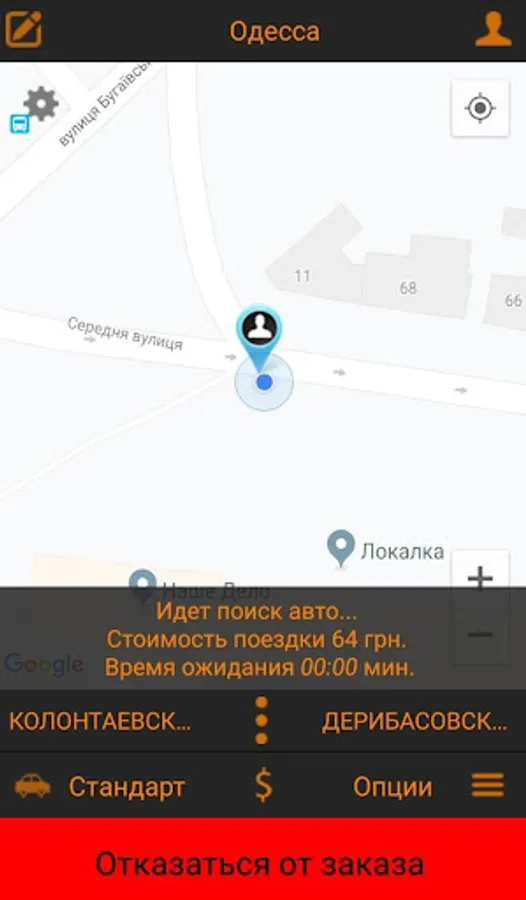 6. Click "Order a taxi" and the search for a taxi starts immediately, the speed of finding a taxi is minimal, since more than 10,000 taxi cars are connected to our database.