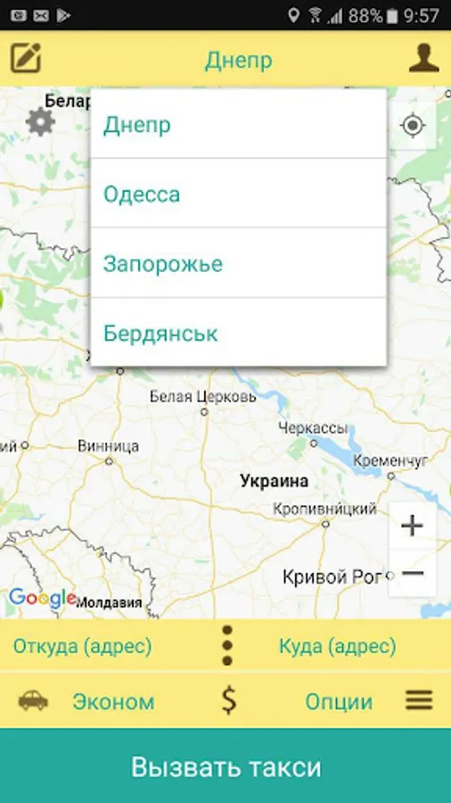 Application for ordering car trips to the city of Dnipro, Odessa, Zaporozhye, Berdyansk. Here you can order a car for trips around the city without calling the operator.