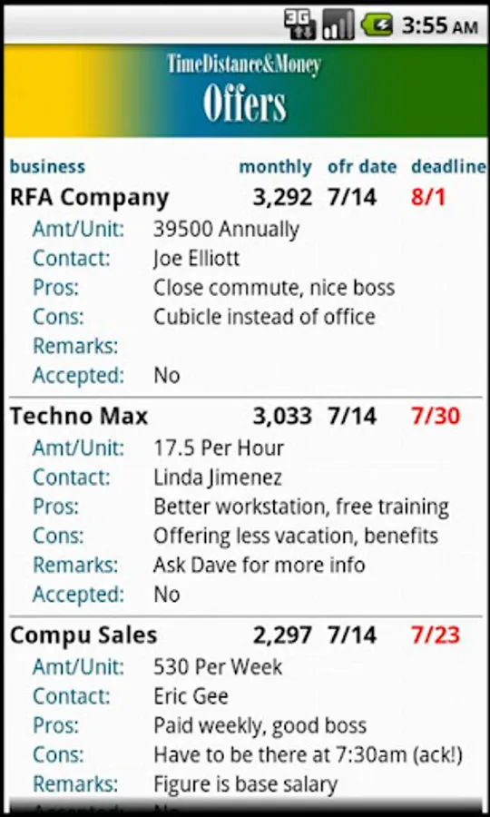 The Offers module lets you keep track of simultaneous offers you may receive from employers or work places. It lets you compare multiple offers in one convenient place, so you can make the best choice. And you can keep track of deadlines so you don't blow a big opportunity.