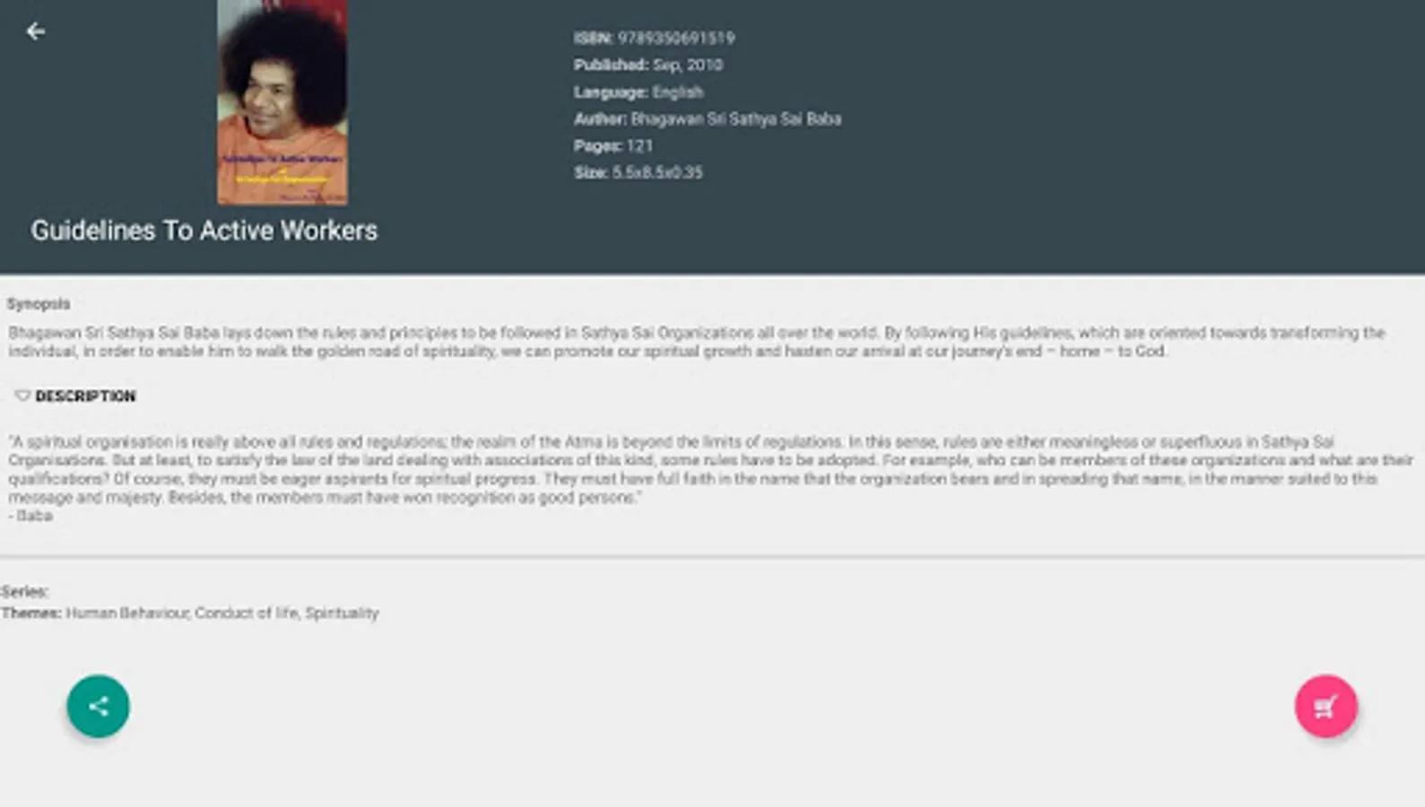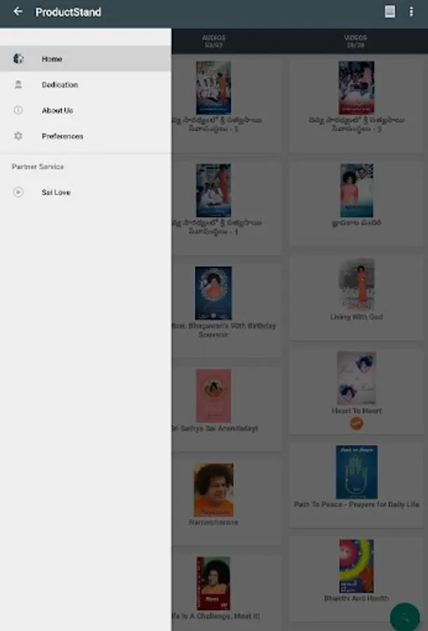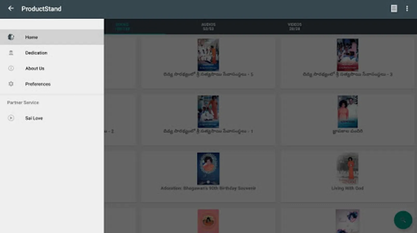 Sri Sathya Sai Sadhana Trust, Publications Division (SSSSTPD) humbly places at the lotus feet of Bhagawan Sri Sathya Sai Baba, its first Android application: ProductStand. Built on the Android platform, ProductStand is a mobile catalogue of Sri Sathya Sai products published by SSSSTPD, available via its own and a global network of online stores. This application is, of course, free. Every product listed in ProductStand contains links to the various stores, from which the product may be purchased.