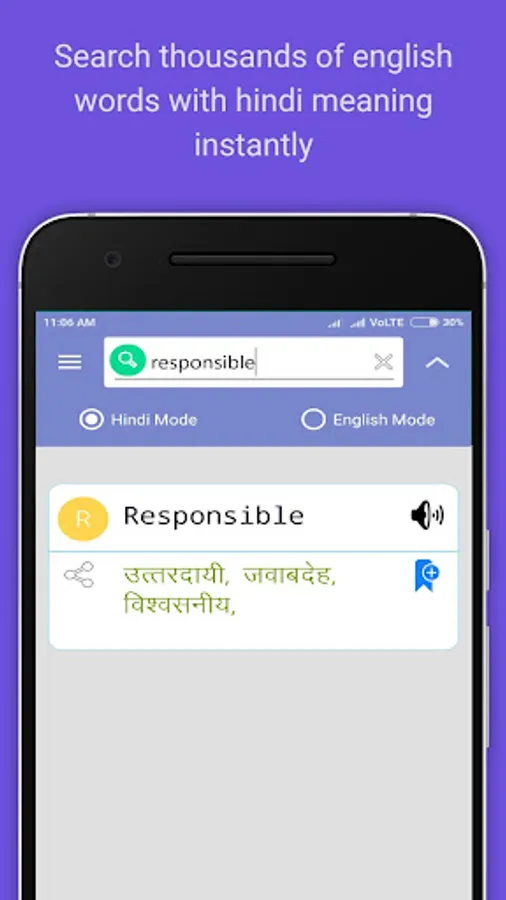 3. This English to Hindi dictionary is offline means you can enjoy all the features of this dictionary without internet.