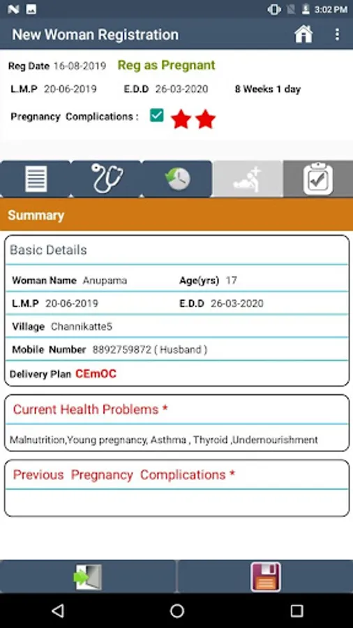 • Complete list of planned services with auto calculated dates for ante-natal and post-