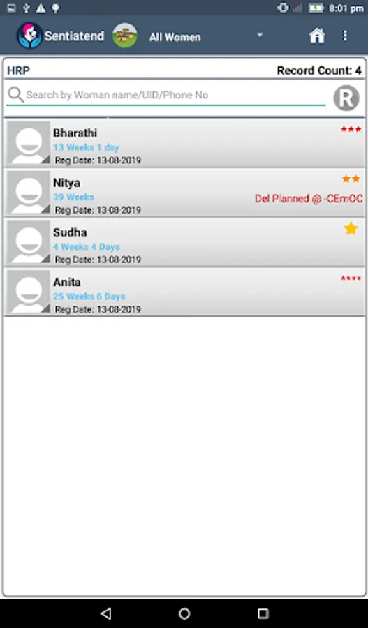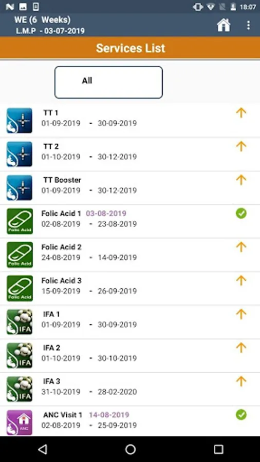 • Clear indication of All,Expired,Pending,Upcoming,Completed services list for each woman.