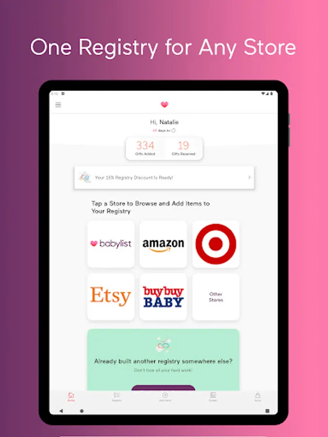 • ADD OR LINK TO EXISTING REGISTRIES - Easily combine any baby registries you’ve already started. Keep track of everything on your wish list in one place.