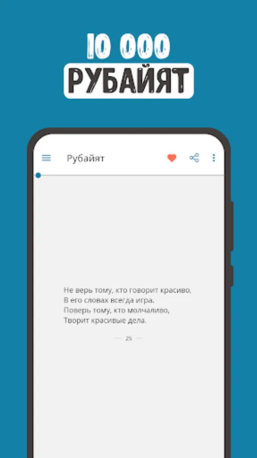 A simple and intuitive interface will be a good helper for you when reading Rubaiyat of Omar Khayyam for free. The application will save for you wise thoughts and words where you finished reading.