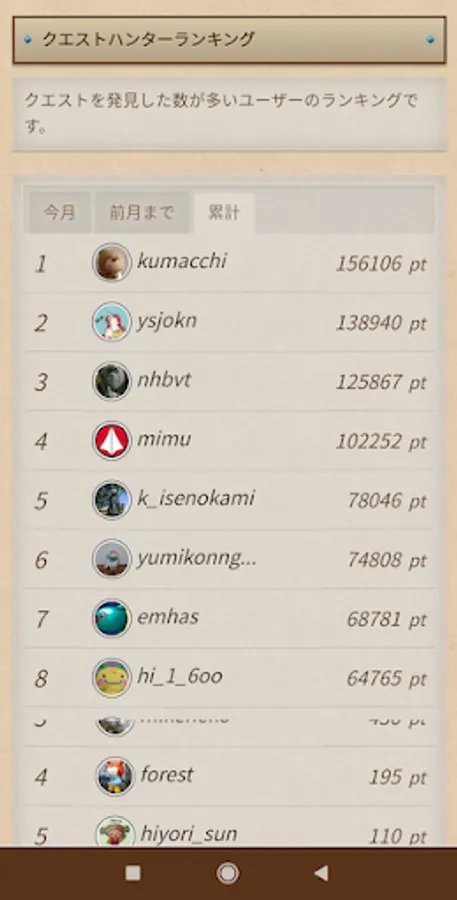 - クエストをクリアするとポイントゲット!ランキング上位を目指しましょう。