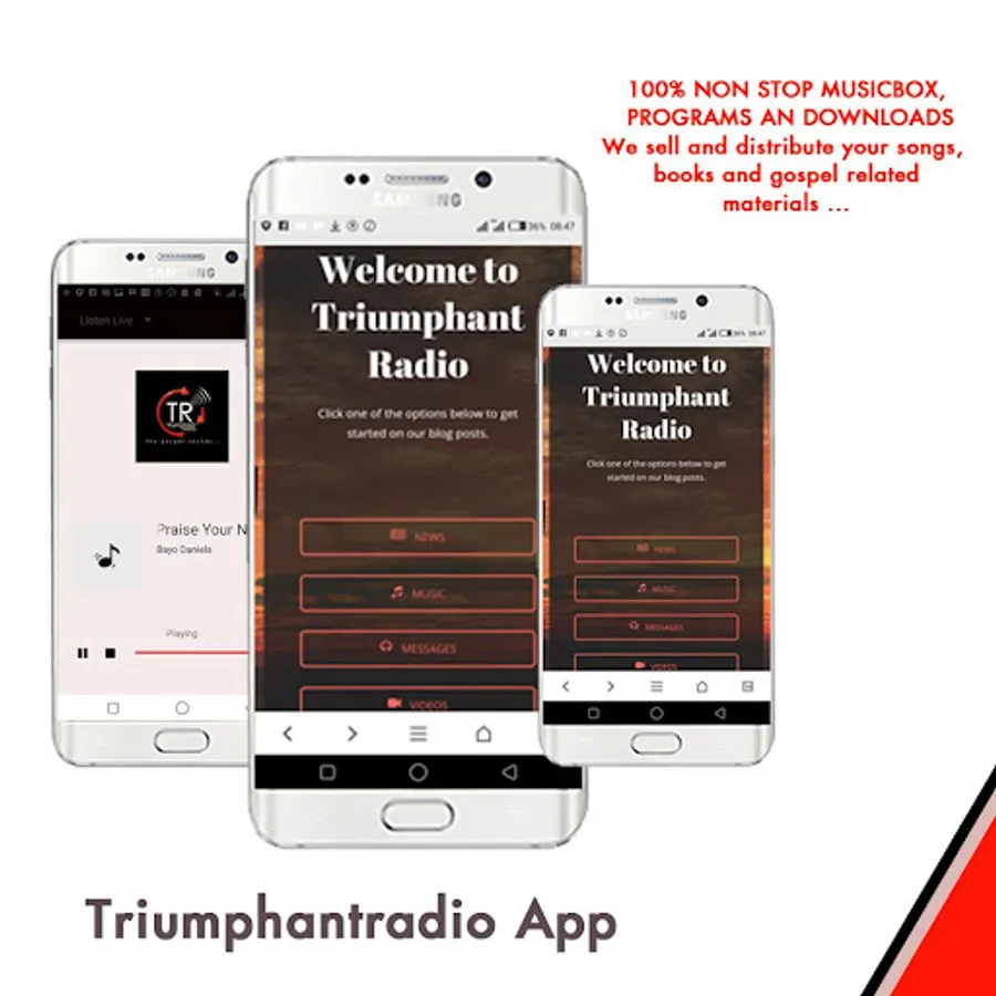 Triumphant radio is a continental online radio network, with an heaven on earth mandate to bring laughter and joy to homes and the hopeless , “Exodus 15:1” through the online radio. This platform is created for artists to promote their songs to the world, and for live news, program live streaming, messages from the altar, inspirational and devotionals.