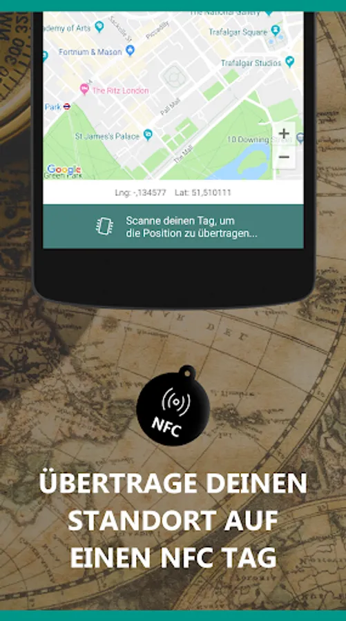 1. Use the app to find your current location and transfer it to an NFC tag.