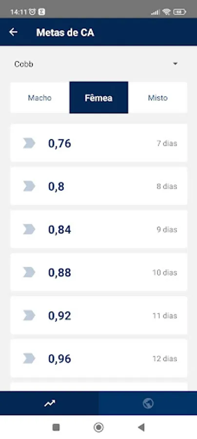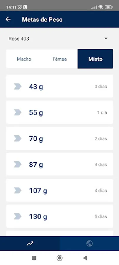 It is also possible to monitor the ideal weight and AC according to the age, lineage and sex of your flock.
