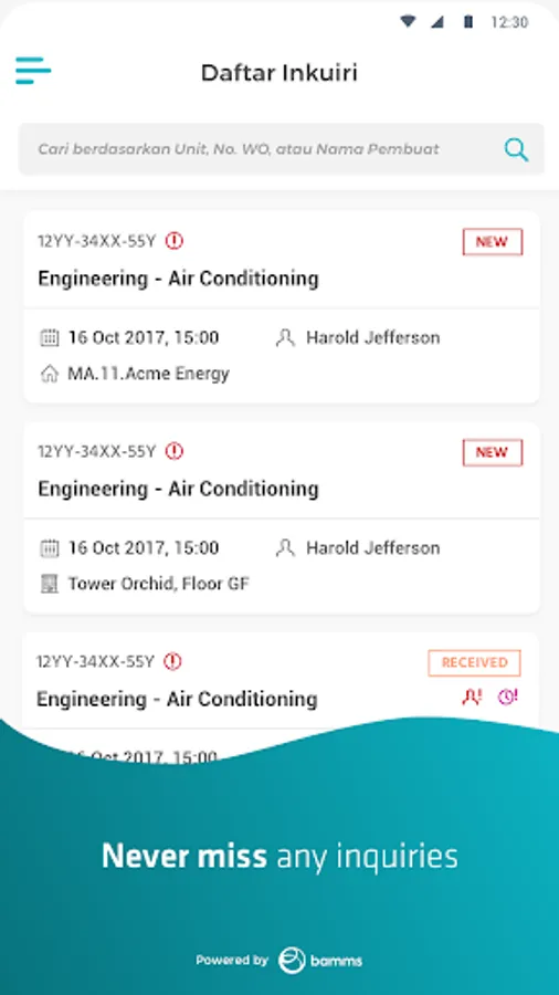 Introducing Building Management SQT by BAMMS, a mobile application that allows all tenants to receive information about their building and units, to report problems or to create and manage inquiries, and to request for any value added services provided by the building management.