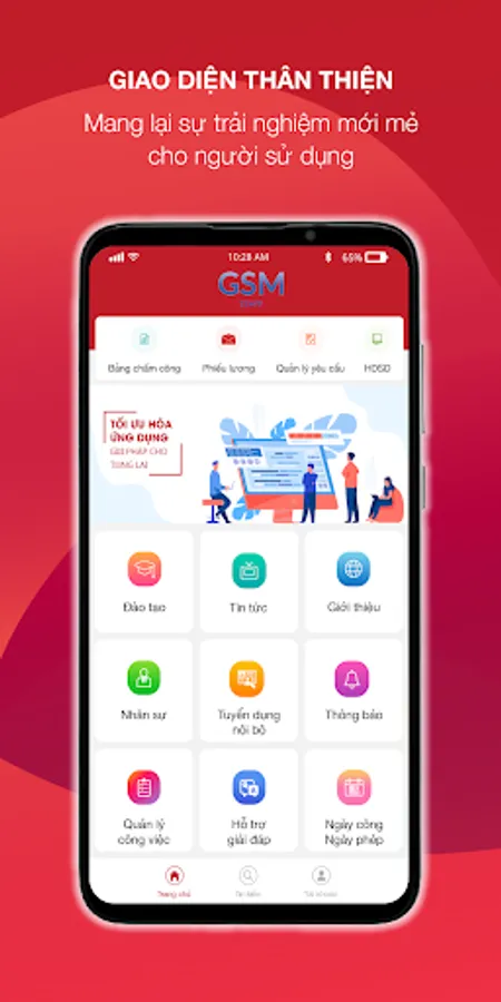 The application for GSM employees provides utilities including: