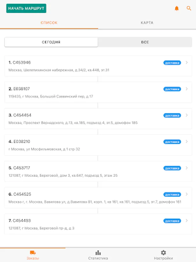 The application is intended for employees of the company "Luchki" to work with orders for delivery.
