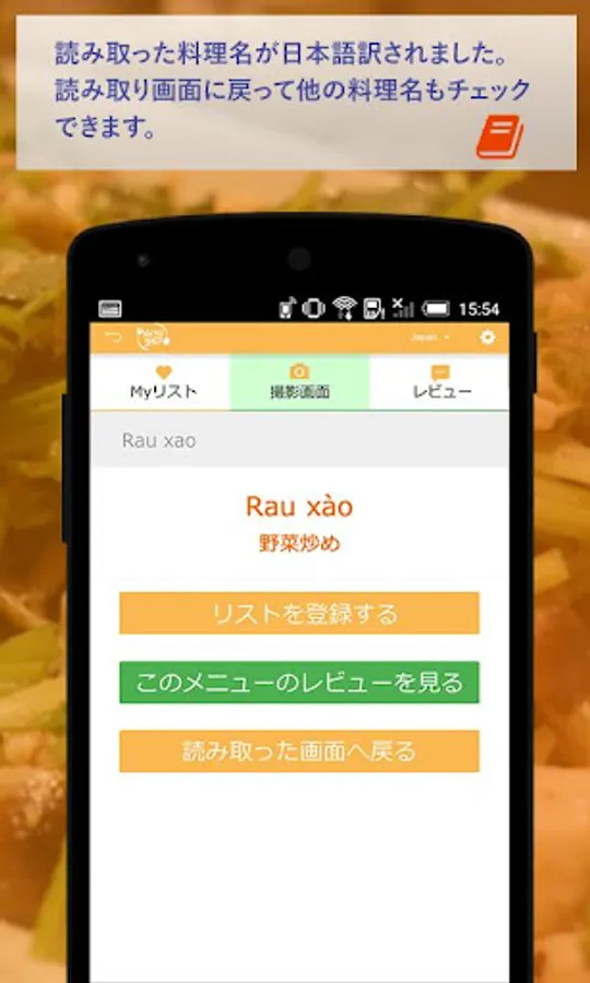 「このアプリでベトナム語のメニュー名を撮影するだけで、料理の内容がわかる。」