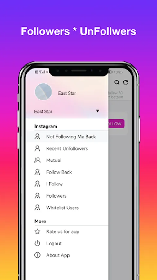 Followers and Unfollowers is a free Instagram follower analyzer app. Followers and Unfollowers lets you view Instagram profile insights. With our app you can easily manage and track your followers. It also gives you insight into who you're mutual following, who you're not following, and even who you unfollowed recently on your Instagram profile. In addition, Followers and Unfollowers supports multiple account login, you can easily switch between different Instagram accounts.