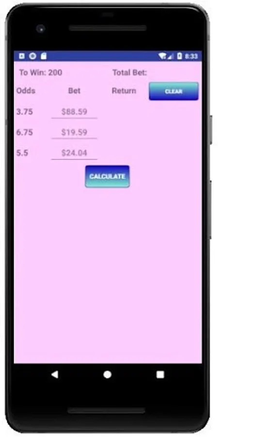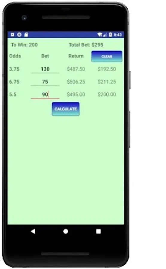 In both Single and Multi Win, tapping the Calculate button saves the input values and calculates the bets, returns and total bet. Each Bet belongs with the Odds from which it was calculated. If the user decides not to place one or more of the calculated bets, the calculations will be wrong for all bets.