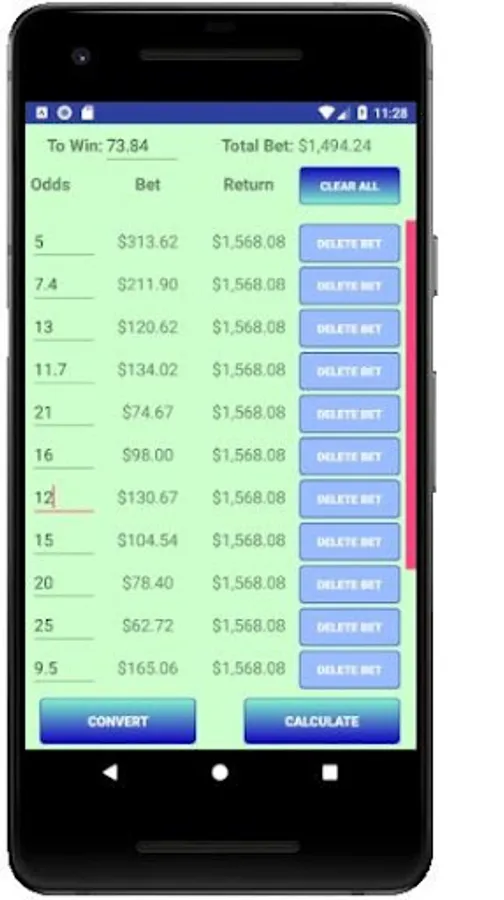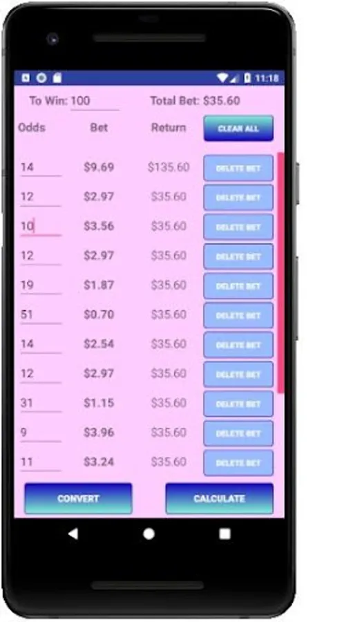 To quickly delete a bet, tap the appropriate Delete Bet button beside the bet then recalculate.